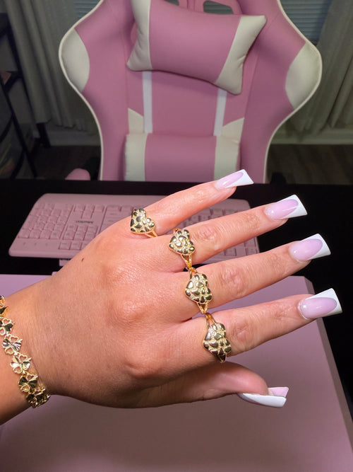 Our jewelry is gold-plated, not solid gold. Tarnishing may occur over time and varies based on wear and tear. Proper care helps maintain the finish and shine.
