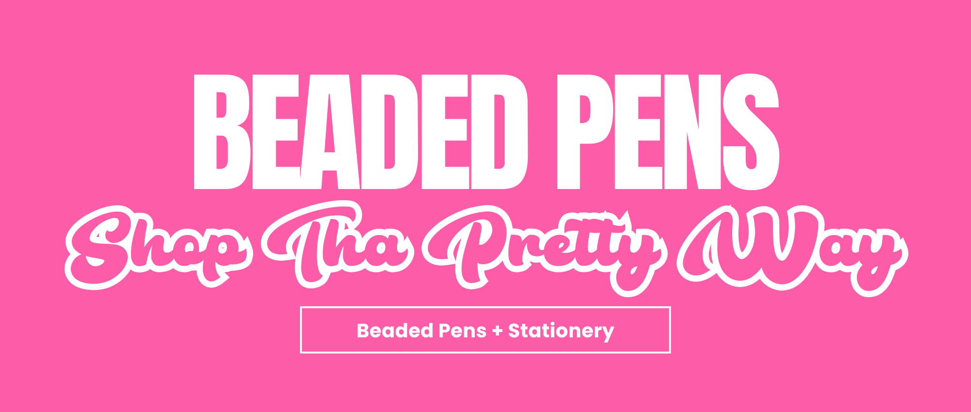 Handmade beaded pens with a smooth ballpoint tip and black ink. Each pen includes black ink refills, with blue ink refills included in select orders while supplies last. Designed with silicone and acrylic beads for a cute, pretty pop that’s made to stand out.